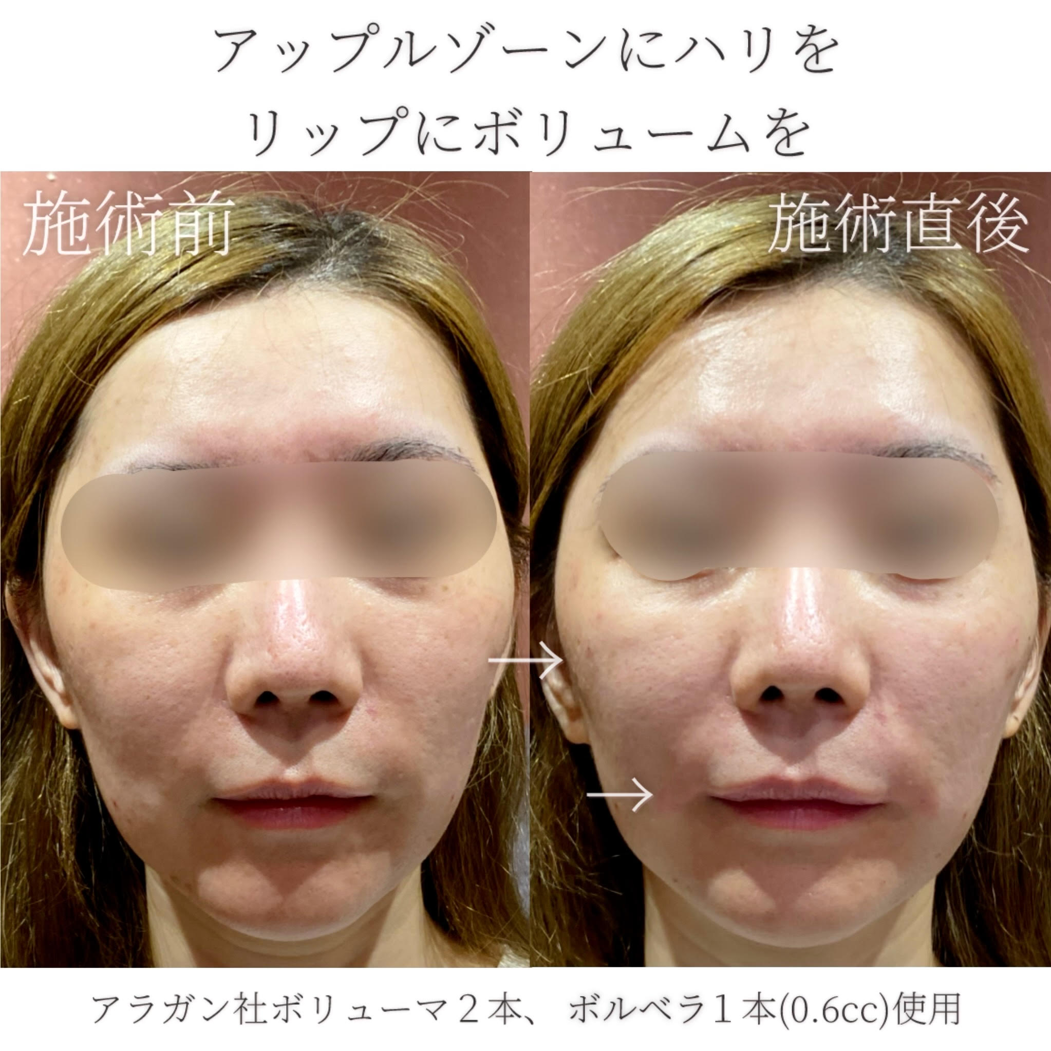 年齢とともにボリュームが失われたお顔に、ふっくらとしたボリュームを与え、若々しい印象を作り出します。